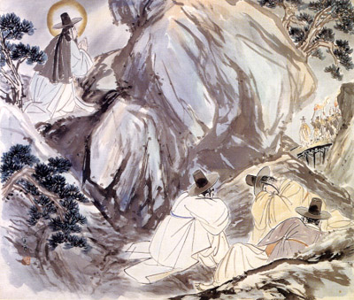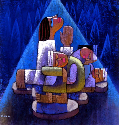 This is my last post on Gethsemane, and I’d like to devote it to the presentation of some indigenous interpretations of the event. In the Christian art of other countries, Gethsemane is treated far less frequently than other events in the life of Christ, like the nativity and the last supper. (Madonna and Child portraits, though, tend to be the most common.) But I was able to find these few pieces of art on the topic (in addition to the two contemporary paintings I discussed in a previous post—from Indonesia and Uganda). Note how each artist gives Jesus native features, clothes him in native dress, and places him in a native environment.