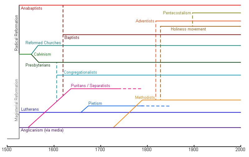 These two charts from Wikipedia are just one of many possible ways to illustrate the various divisions (and subdivisions, and sub-subdivisions) of the Christian church.  Depending on who you ask, there are three to nine main branches of Christianity (Catholicism, Protestantism, etc.), and then growing out from each of those branches are yet more branches, and then different twigs and buds grow from those branches.  Beyond that, some people also insist on making even further distinctions by wing (conservative, mainline, liberal) and theological belief system (Calvinism, Arminianism, Dominionism, etc.).  My question is:  With so much variation, are we all still growing from the same root (namely, Jesus Christ)?