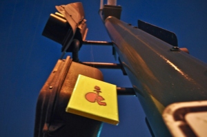 They also run free spray paint workshops, inviting locals to design their own Bibles, and create large-scale display pieces to be installed in various shops. And their nighttime romps through the city often involve a series of “Up Chucks,” in which they throw a Dagger over a street fixture, attached to a fishing wire, with a sign that reads “Cut me down!”, or something of the like.