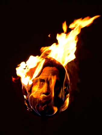 Mach likes to make live performance part of his art, so last Thursday (August 4), he burnt the devil match-head sculpture in front of a cheering crowd. I haven’t heard yet whether he plans to burn the Jesus sculpture, but I would venture to assume “yes.” “The act of burning does not destroy the work but is in fact an act of creation,” he wrote. “The sculptures remain completely intact but they lose their colour in the fire and emerge as more somber shades of black and grey and age a hundred years in a few seconds.”