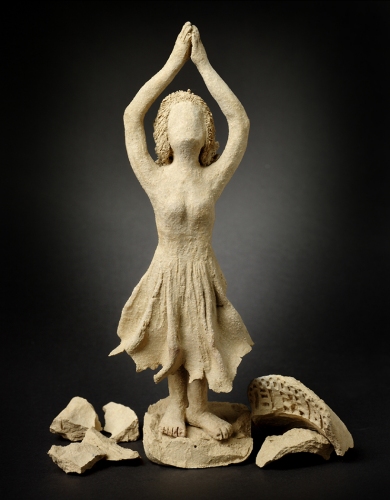The following series of ceramic sculptures, titled Mourning to Morning, is by American artist Dorothy Gager. She said that there was a time in her life when she had withdrawn from others and wrapped herself in woundedness, but then eventually, through the consolation of God’s Spirit, that woundedness became her dancing skirt.