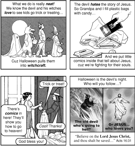 But I am glad that the JesusWeen organizers do not go so over the top as to denounce Halloween as “satanic” or to condemn all costume-wearers to hell, as some Christians, like religious cartoonist Jack Chick, are wont to do: