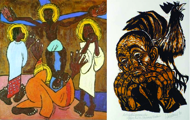 Left: William H. Johnson, Jesus and the Three Marys, 1935. (Source) Right: Walter Habdank, Peter and the Crowing Rooster, 1979. (Source)