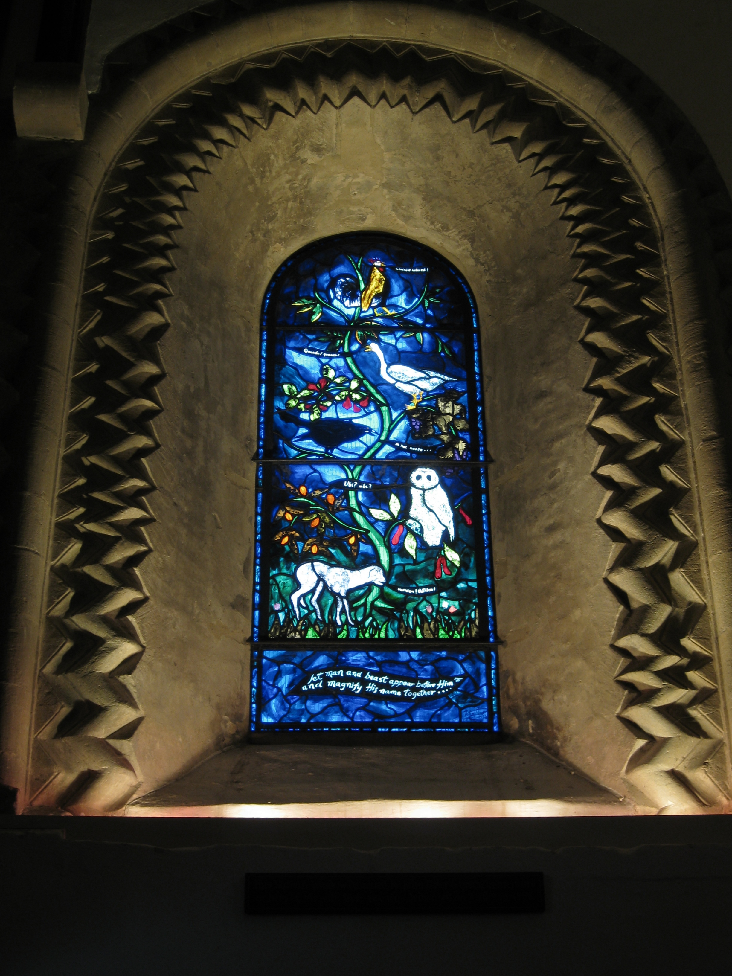 This small Norman church, built in 1170, is not a popular tourist destination, but I knew it would be worth the bus ride outside Oxford’s city center because of its two modern stained glass windows, which I had seen in photographs and wanted to see in person.