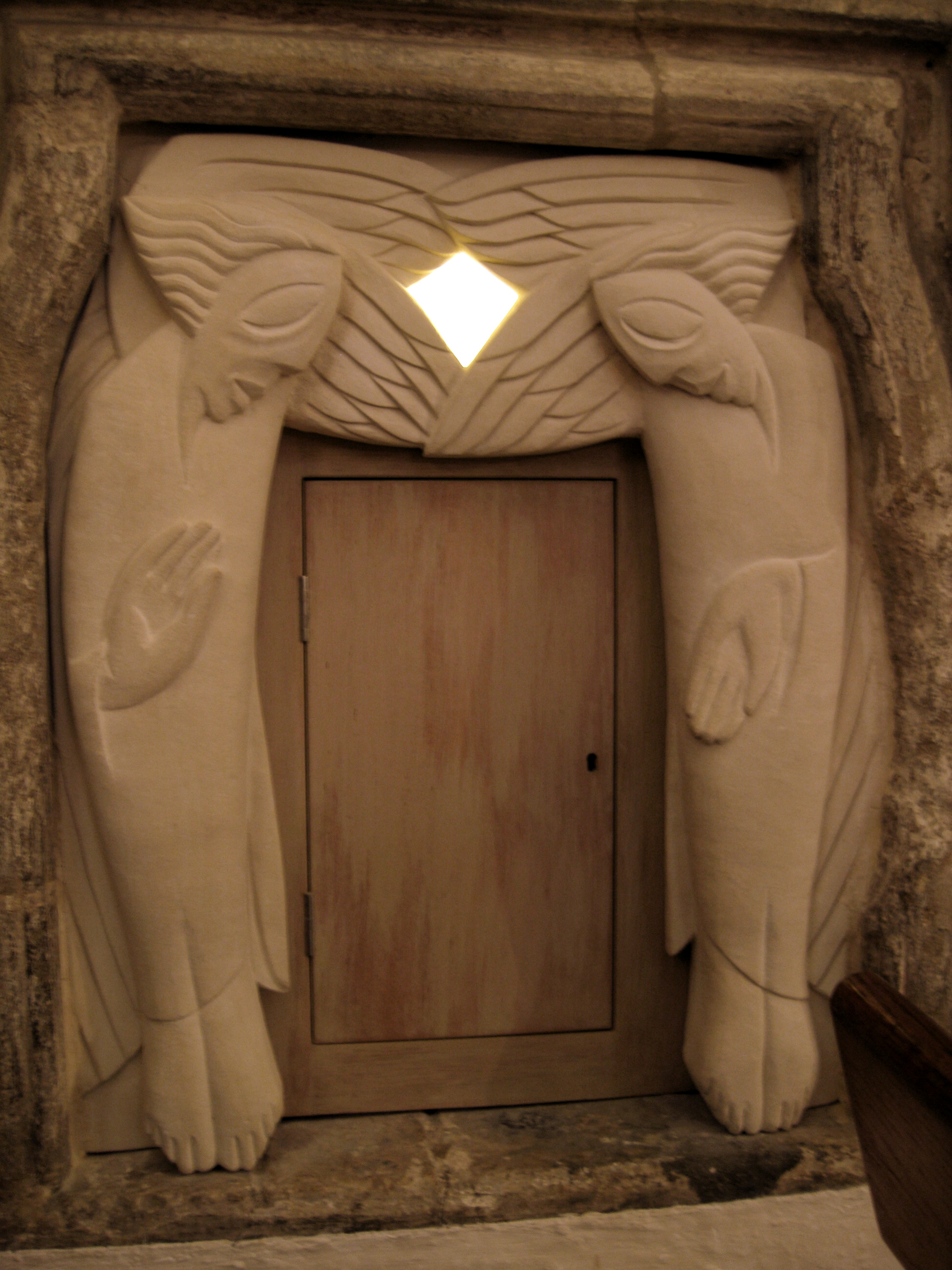 The only contemporary carving in the church, I believe, is Nicholas Mynheer’s aumbry, which is where the communion vessels are kept when they are not in use.