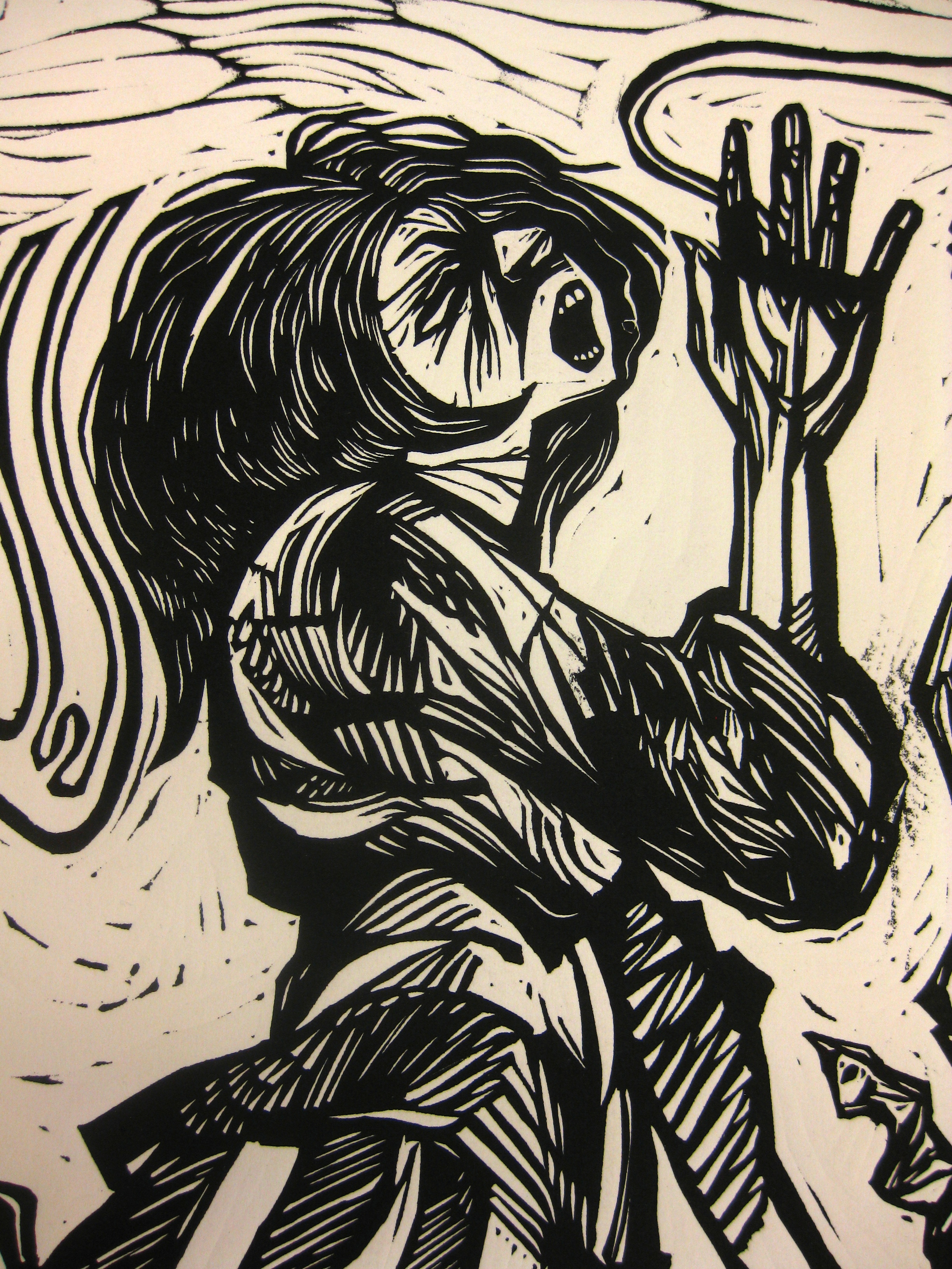 Steve Prince, Wailing Wall: Song for Quin, 2009. Linocut, 24 x 36 in. (Click to enlarge)