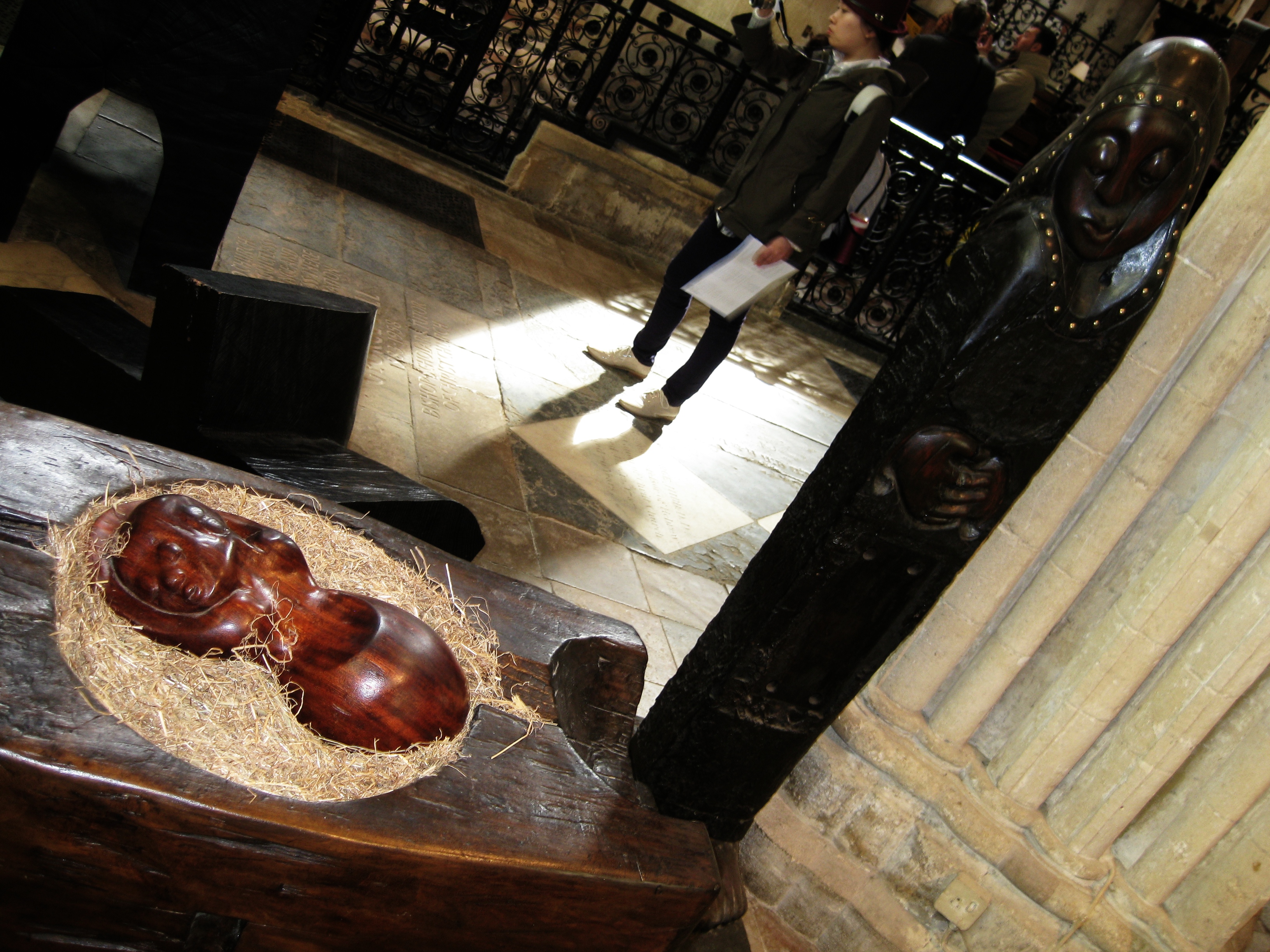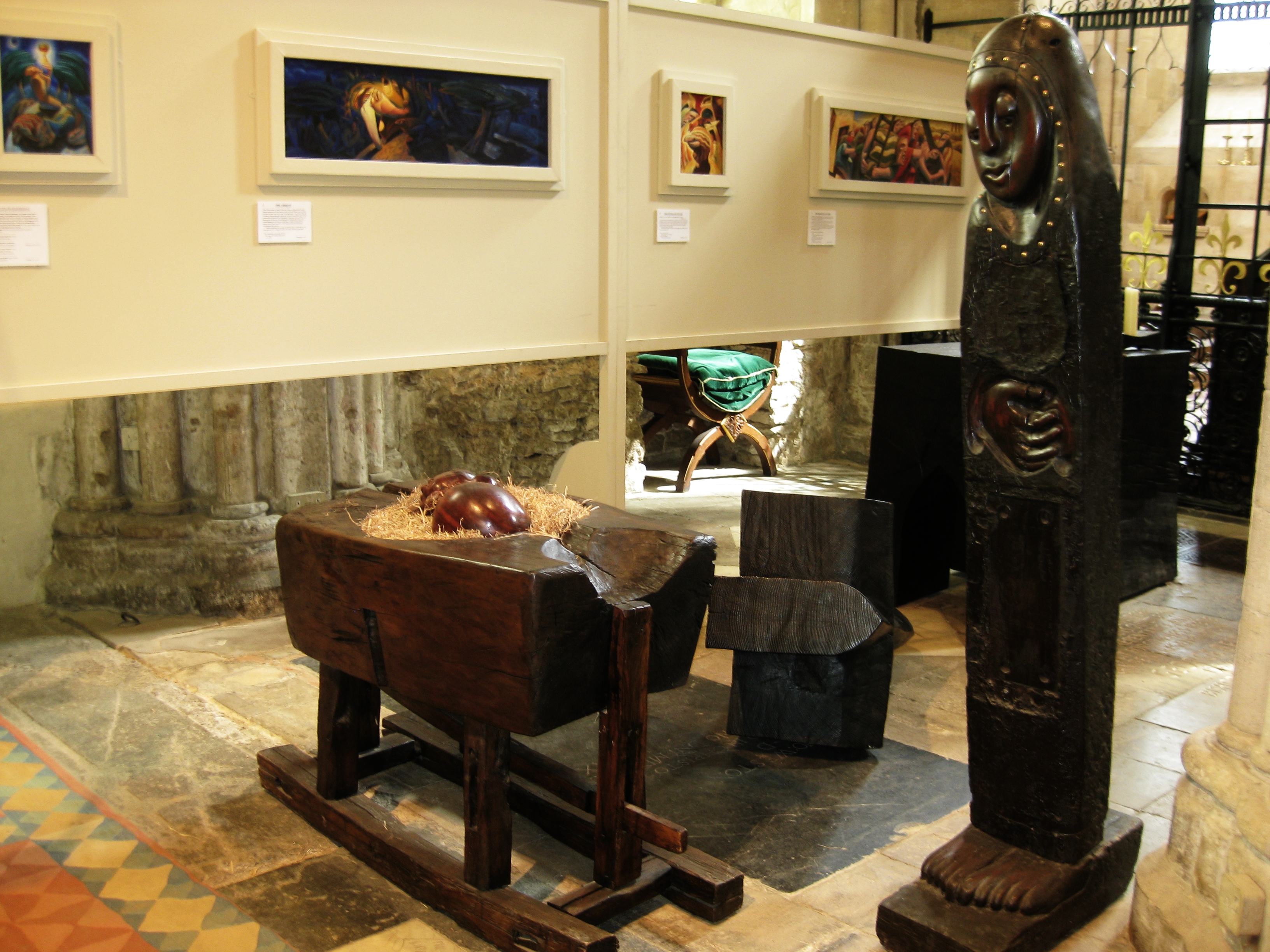I love that so many centuries-old churches in England are still commissioning art—inviting contemporary visual styles into their worship space to stand alongside medieval pillars, frescoes, and window glass as expressions of the times that change and the Truth that does not. Christ Church Cathedral in Oxford is one such example, as two twenty-first-century wood pieces are on permanent display at the head of its twelfth-century north aisle.
