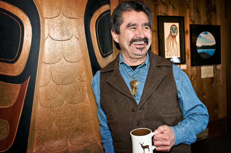 The artist, Charles Elliott, is self-taught and works in the mediums of drawing, painting, woodcarving, printmaking, and clothing design. He has dedicated his life to reviving the Coast Salish art tradition, which he says is the least known of all the Northwest Coast styles. To this end, he mentors young artists and teaches in classroom and organizational settings. He lives on the Saanich Peninsula on southern Vancouver Island.